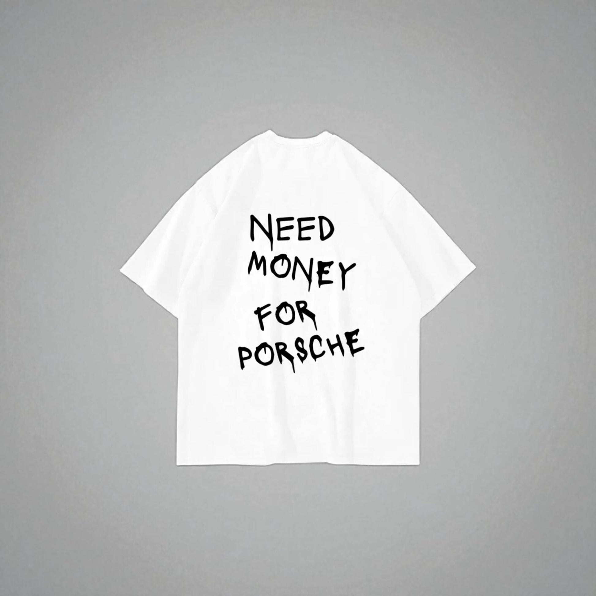 -Acest tricou supradimensionat , care iese în evidență prin imprimeul „Need Money For Porsche”, oferă un stil ce reflectă energia tinerilor.